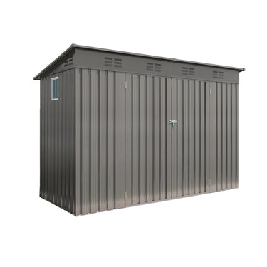 4 x 9 FT Outdoor Storage Shed, Metal Garden Shed Tool House with Sloping Roof,6 vents and 2 Swing Doors for Backyard, Garden,Patio, Garage, Lawn, Gray