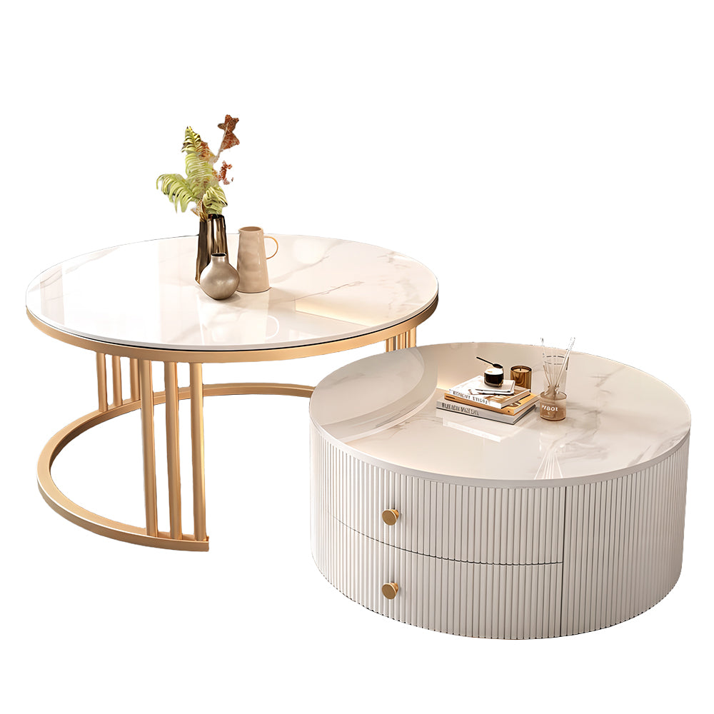 Eeeza Modern Nesting Coffee Table Set with Sintered Stone Top & Hidden Storage