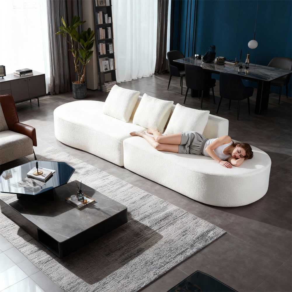 - This sofa adopts a modern minimalist design philosophy, characterized by clean lines and an elegant, sophisticated silhouette. It not only seamlessly integrates into various home decor styles but also instantly elevates the overall sense of luxury and artistic ambiance in the space, making it the undeniable focal point of your living room