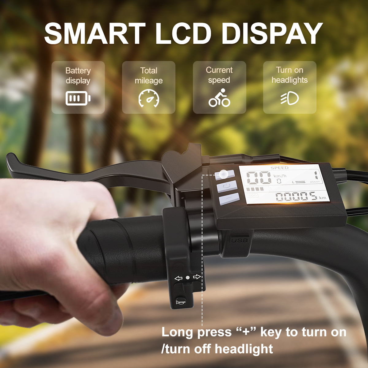 【𝙀𝙭𝙥𝙚𝙧𝙞𝙚𝙣𝙘𝙚 𝙩𝙝𝙚 𝙋𝙚𝙧𝙛𝙚𝙘𝙩 𝙍𝙞𝙙𝙚】——Stay connected and in control with the X50’s high-definition smart display, designed for electric bikes for adults. It shows battery level, speed, 5 adjustable PAS levels, and offers three riding modes for any journey. The display’s adjustable brightness ensures visibility day or night, while the 7-speed transmission gives you precise control. Whether commuting or adventuring, this electric bike combines comfort, functionality, and fun in every ride!