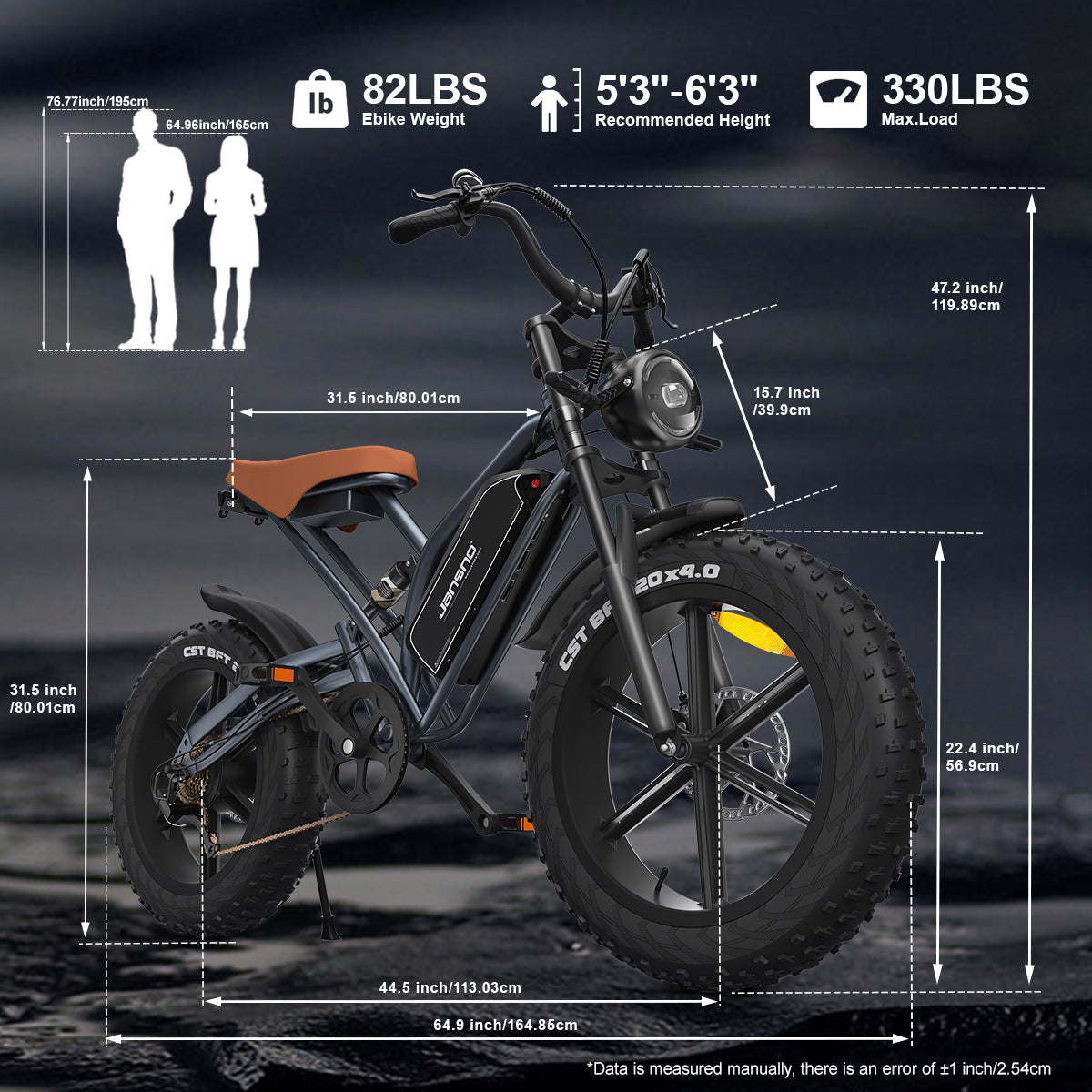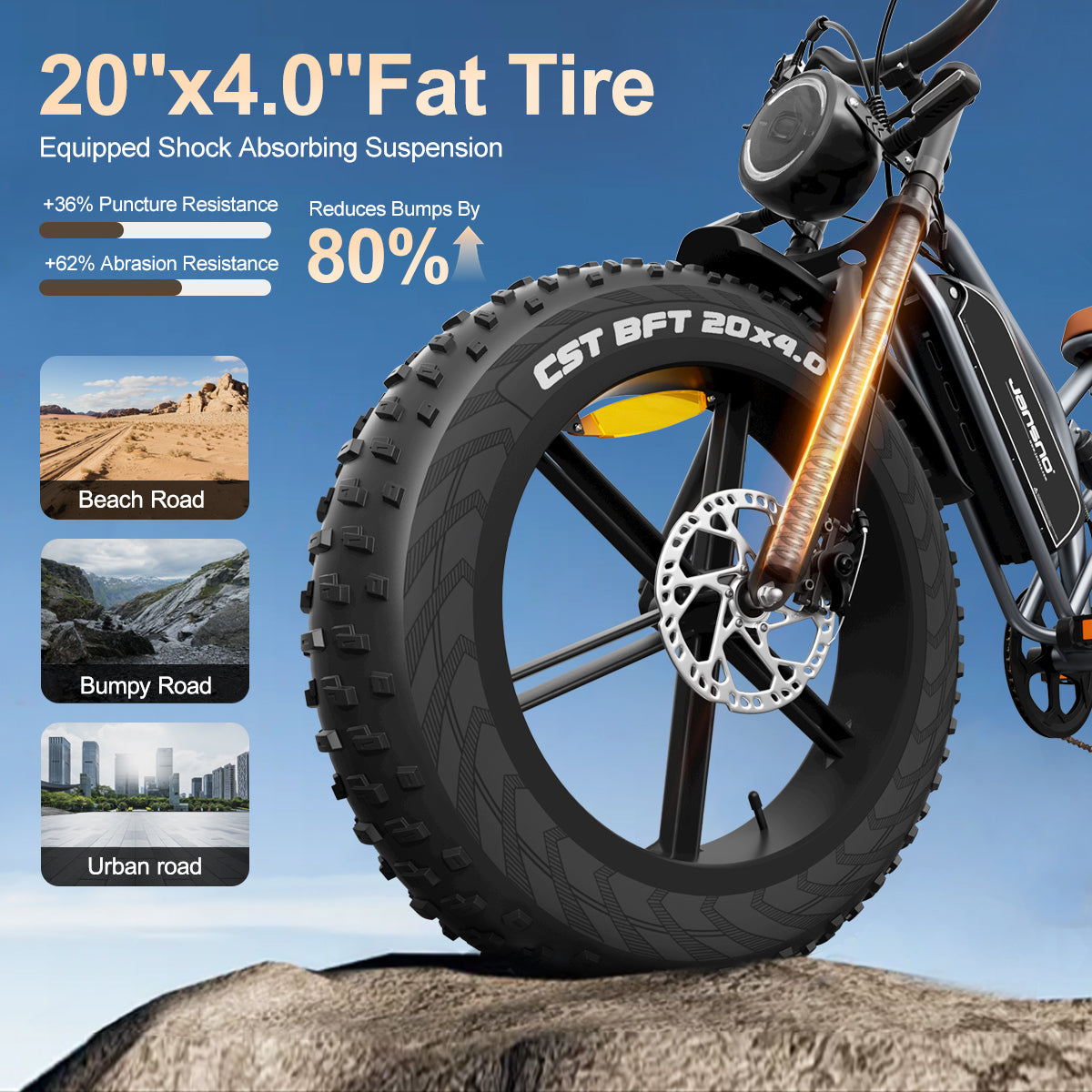- Tires: 20-inch, integrated wheels, 0.3 puncture-resistant layer