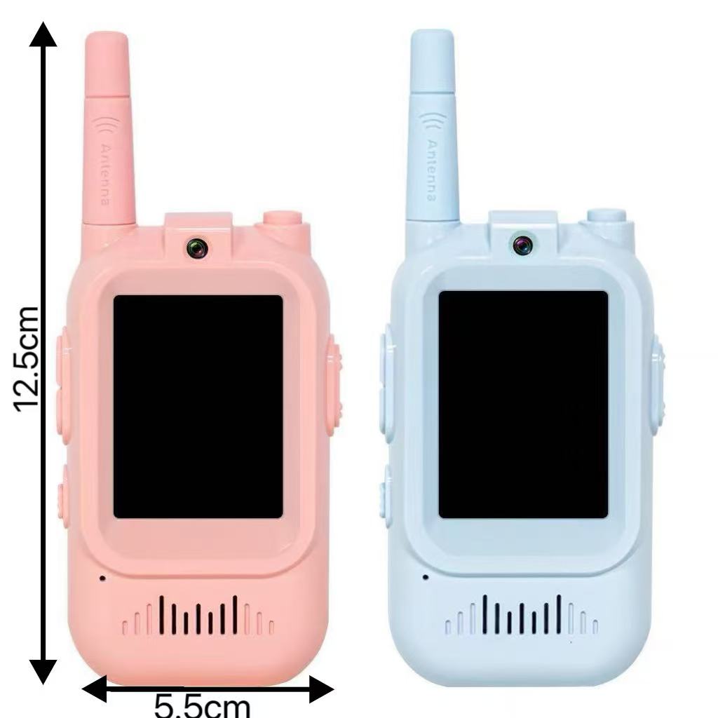 This kids' video walkie-talkie comes in cute blue and pink color options, featuring one-touch call, ultra-long distance communication and high-definition sound quality. Equipped with a clear display screen, it supports video talk, emoji chat and built-in WiFi, while the 2.0-inch IPS screen and SPOA39 lens deliver vivid visual effects. Powered by a 3.7V 650mAh battery, it works stably in temperatures from -20℃ to 60℃ with a working range of 100-150m, making it the perfect interactive toy for kids to play and communicate!