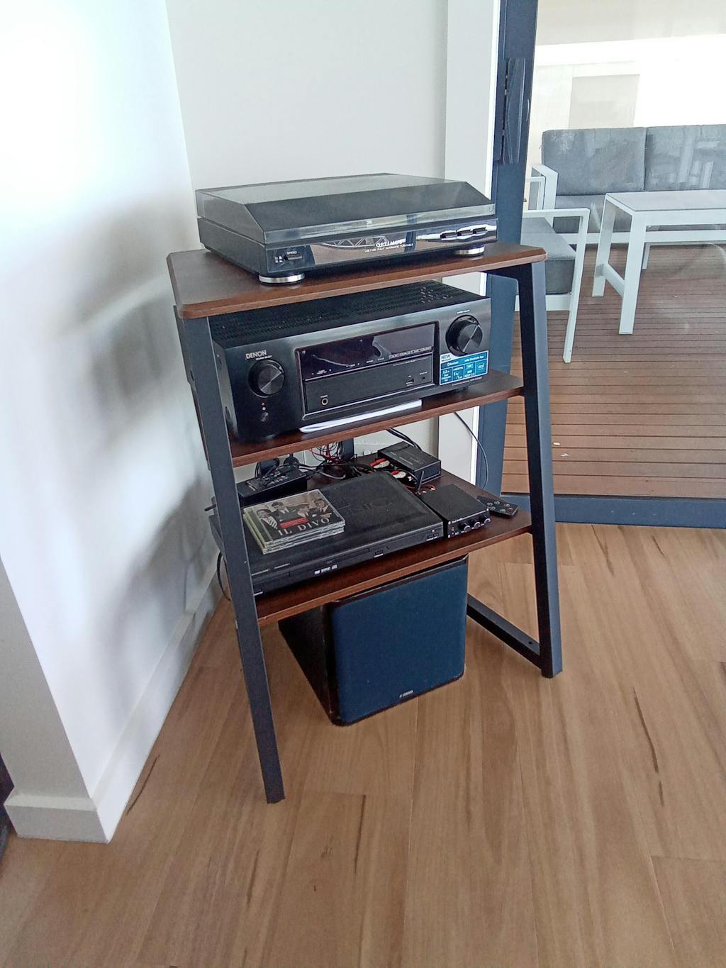 - 4-tier space saving and adjustable shelf: the sizes of this 4-tier shelf for record player is 24*20.4*30.6inch, with convenient heat dissipation and 2 adjustable laminates height, can fits better with your audiovisual equipment, TV accessories, sound bar, woofer, DVD player, game console, Blu-ray player, PS4, Xbox One, cable box, amplifier, Speakers, record players, etc, the top shelf can also support certain LCD / LED flat panel TVs
