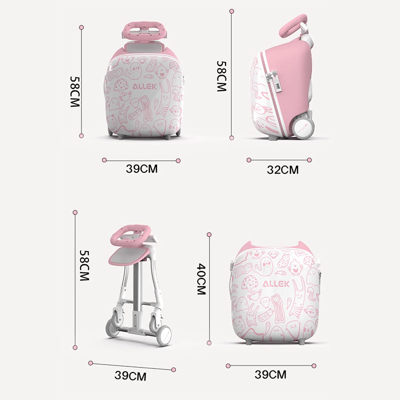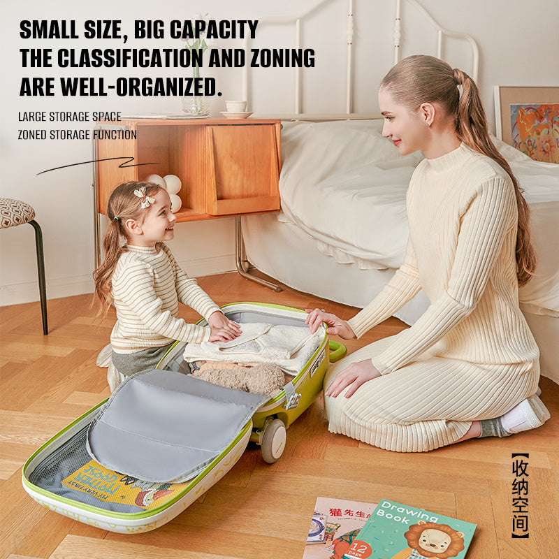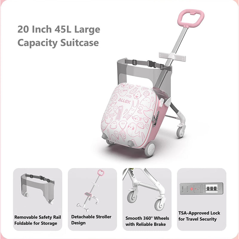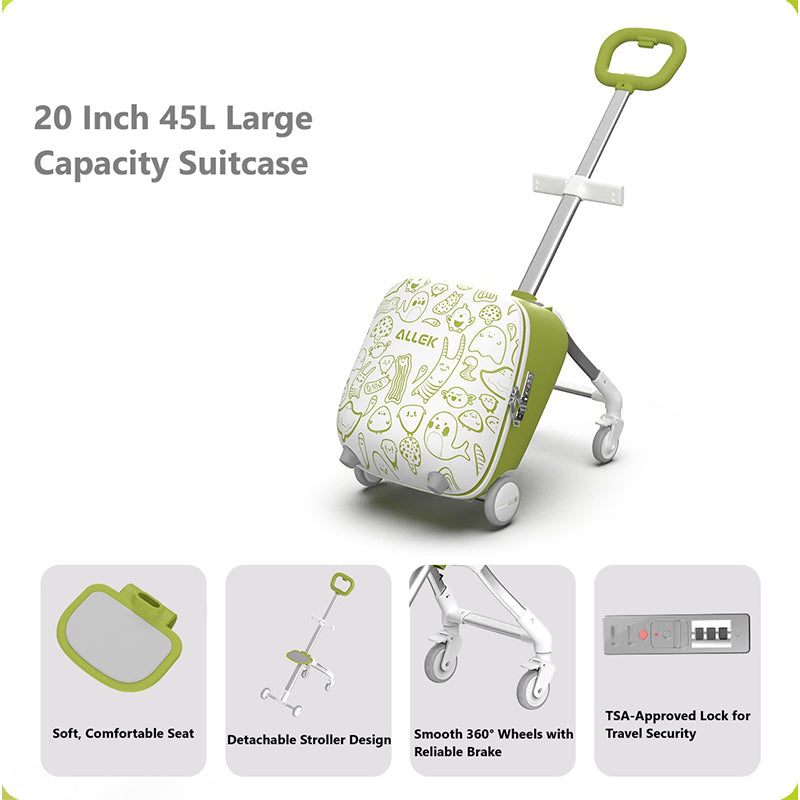 20" Children Travel Suitcase With Seat And Rider Capabilities,Anti Rollover, Carry-on Luggage Lightweight