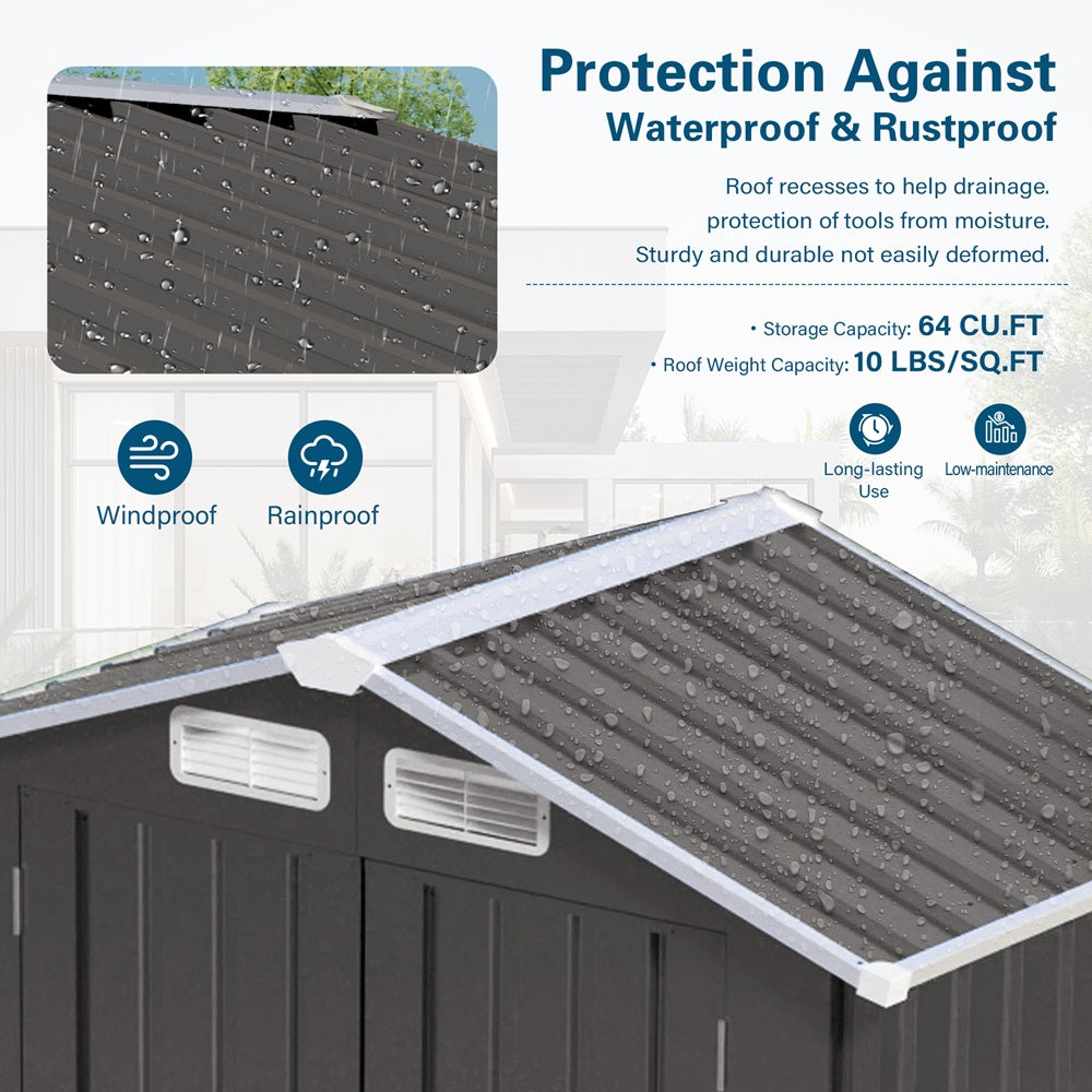 5X3 FT Metal Outdoor Storage Shed, Tool Shed with Peaked Roof Waterproof, Lockable Door Compact Metal Tool Shed for Garden, Backyard, Patio, Sundries and Bike Storage, Gray