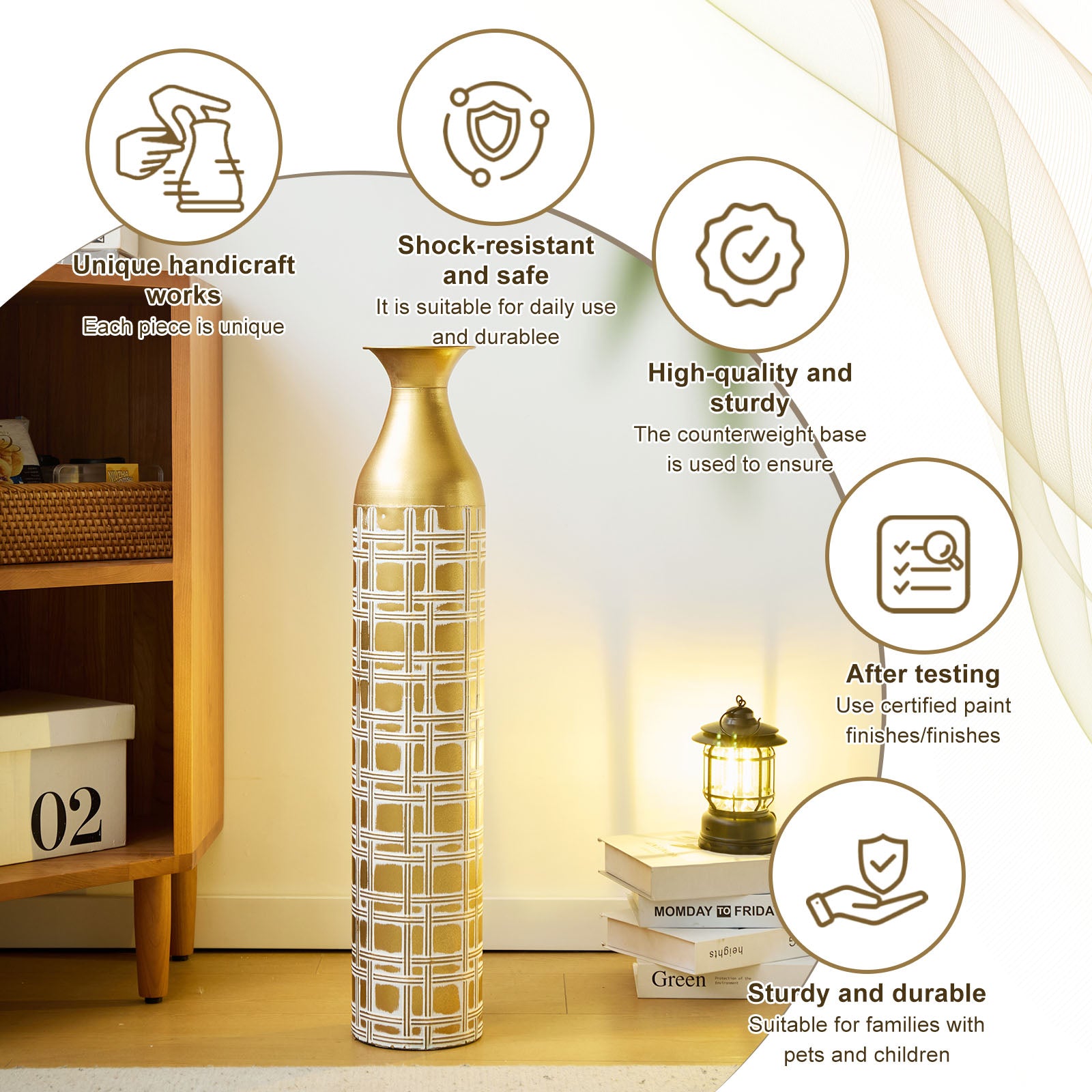 Stunning Statement Piece: Command attention with this elegant tall floor vase, standing at approximately,Its impressive stature and luxurious gold finish make it a perfect focal point for your living room, entryway, or dining area.